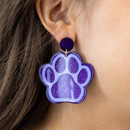 Paw Print Acetate Earrings Purple/Light Purple 2"